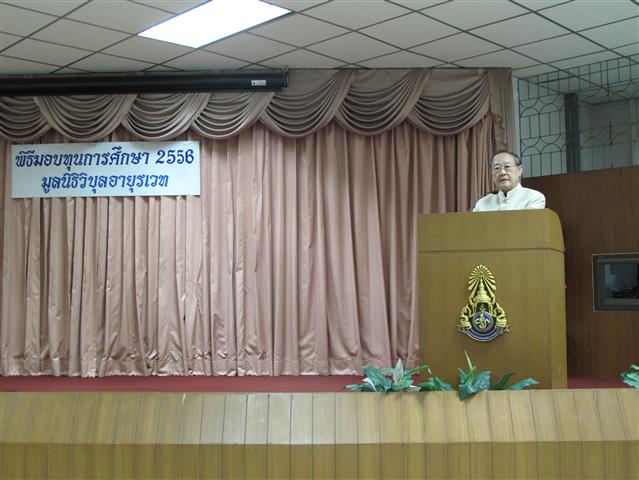 ดร.สุเมธ ตันติเวชกุล กรรมการและเลขาธิการมูลนิธิชัยพัฒนาเป็นประธานในการมอบทุนการศึกษา และให้โอวาทผู้รับทุน โดยมูลนิธิวิบุลอายุรเวทฯ จัดให้มีพิธีมอบทุนการศึกษาแด่ นักศึกษาแพทย์และพยาบาลศาสตร์บัณฑิตย์ประจำปีการศึกษา 2556 นี้ ณ วิทยาลัยแพทย์ศาสตร์พระมงกุฎเกล้า ห้อง นิรันดร์วิชย อาคารพระมงกุฎเกล้าเวชวิทยา